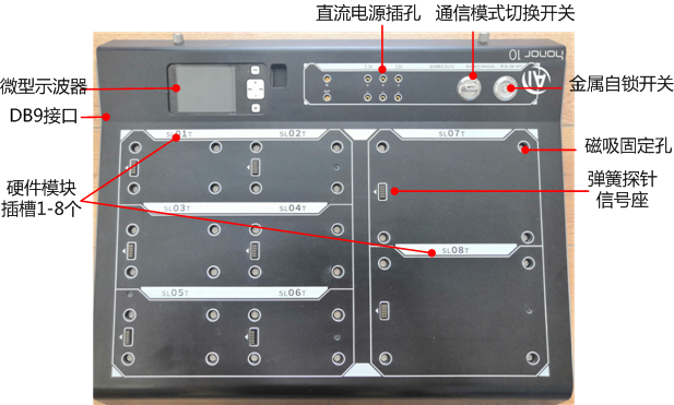 通用基礎平臺由平臺基座與垂直網(wǎng)板組成,符合人體工學設計?;_模設計,采用ABS材料,表面光滑,有質(zhì)感,有對應絲印圖,美觀,大氣;基座具有DB9通信接口,3.3V/5V/12V電源插孔,通信選擇開關(guān)、總電源自鎖開關(guān);內(nèi)嵌微型示波器,可完成電路供電測試及工作過程關(guān)鍵點測試,能夠在電路原理學習基礎上完成實踐中的驗證測試,達到理實一體效果;具有8個SLOT插槽,磁吸固定孔,彈簧頂針管腳,可與硬件模塊磁性吸合,頂針連接,完成供電、RS485、RS232等標準總線通信。硬件模塊任意組合,支持各種場景應用,每個模塊都有通信地址和硬件電路測試點,讓學生不僅懂得硬件電路原理,還可使用示波器測試硬件電路工作的瞬態(tài)過程。垂直網(wǎng)板是金屬網(wǎng)孔板,能磁吸或螺絲固定商用設備,用于用戶實驗拓展。