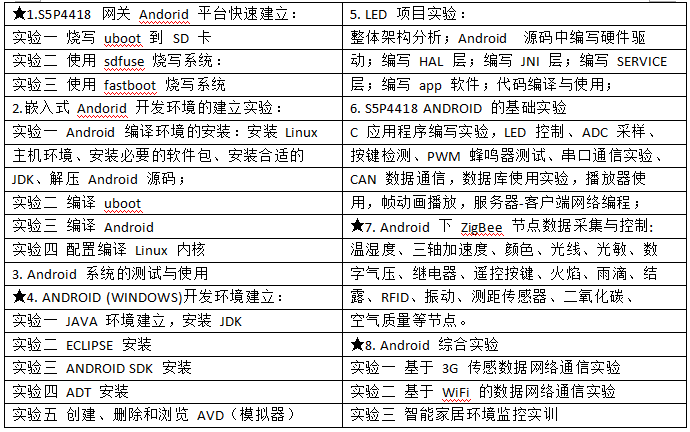 7、基于 WiFi/BT 的網(wǎng)絡(luò)通信開發(fā):可以開展 WiFi/BT 通信原理、WiFi/BT 模塊驅(qū)動(dòng)開發(fā)、WiFi/BT 模塊原理設(shè)計(jì)、WiFi/BT 互聯(lián)網(wǎng)接入、WiFi/BT 移動(dòng)通信與物聯(lián)網(wǎng)應(yīng)用開發(fā)等。