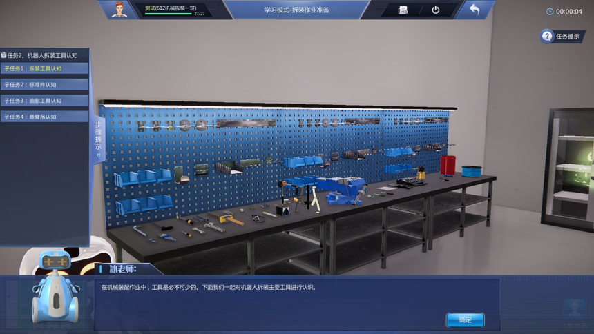 5、沉浸式體驗設計:選擇實際生產中典型工作任務,融合了崗位職業(yè)技能與專業(yè)技術,進行沉浸式學習情境設計,學習者通過實訓系統(tǒng)中的任務提示、NPC指引、語音等完成具體任務,逼近真實的實訓操作。
