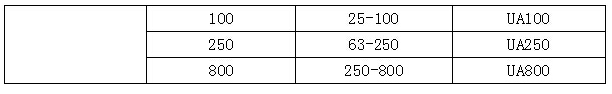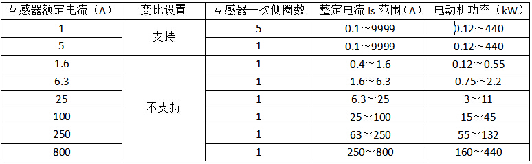 注:>250kW的低壓電動(dòng)機(jī),額定電流小于800A時(shí)均可選用800A等級(jí)的電動(dòng)機(jī)保護(hù)器。