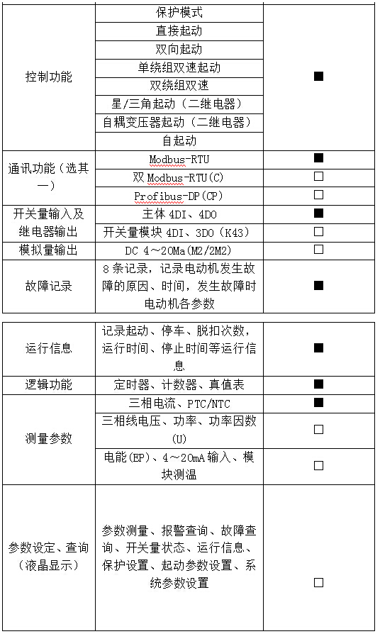 1、“■”為標(biāo)配功能,“□”為選配功能。