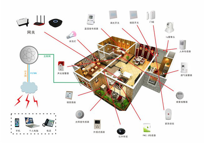 4、安防系統(tǒng):門磁傳感器、煙霧傳感器、聲光報(bào)警器、攝像頭等組合成家里的安全監(jiān)控系統(tǒng),預(yù)防安全隱患和及時(shí)報(bào)警處理。基于WiFi無(wú)線網(wǎng)絡(luò)或是有線網(wǎng)絡(luò)的遠(yuǎn)程視頻監(jiān)控、語(yǔ)音對(duì)講、視頻通話等功能。傳感器實(shí)時(shí)監(jiān)控室內(nèi)各種環(huán)境信息,一旦有異常情況發(fā)生,自動(dòng)生成報(bào)警信號(hào)。