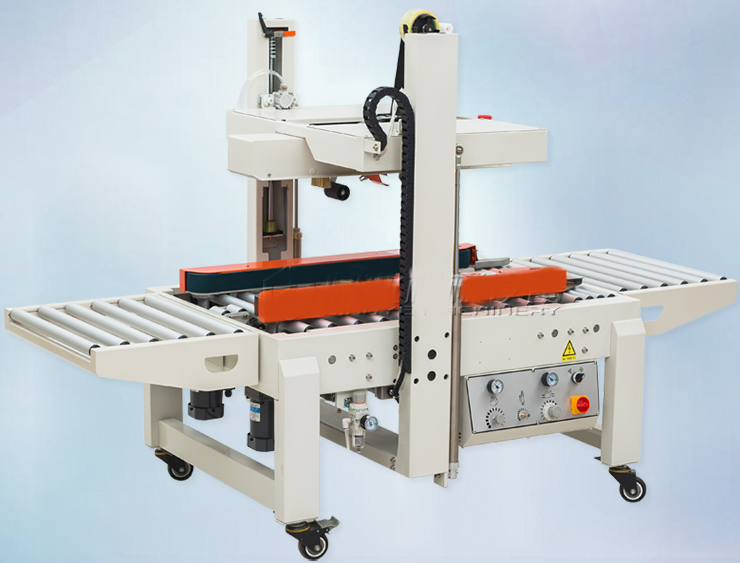 封箱機高度和寬度可根據(jù)紙箱大小自動調(diào)整到合適的位置可滿足紙箱尺寸不統(tǒng)一,但需要連續(xù)封箱的需求。