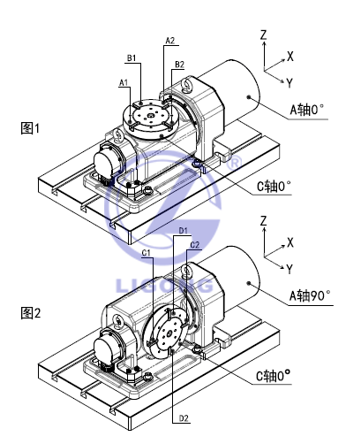 該機(jī)床具有X﹑Y﹑Z三個(gè)直線運(yùn)動的數(shù)控坐標(biāo)軸和A、C二個(gè)旋轉(zhuǎn)運(yùn)動的數(shù)控坐標(biāo)軸, 可實(shí)現(xiàn)五軸聯(lián)動。各坐標(biāo)軸可自動定位,工件在一次裝夾后,可自動完成銑﹑鉆﹑鏜﹑鉸等多種工序的加工。