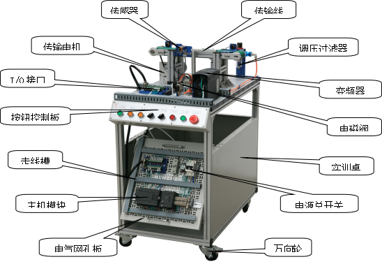 該系統(tǒng)所使用的傳感器數(shù)量達(dá)四十多個(gè),有電容式的、電感式的、光電式以及電磁式的,每一個(gè)都有著各自的特性、發(fā)揮著不同的作用,使系統(tǒng)得以可靠工作。學(xué)員可通過了解工作中各類傳感器的工作特性來加強(qiáng)對這些傳感器的感性認(rèn)識,可使學(xué)員快速掌握所學(xué)知識。