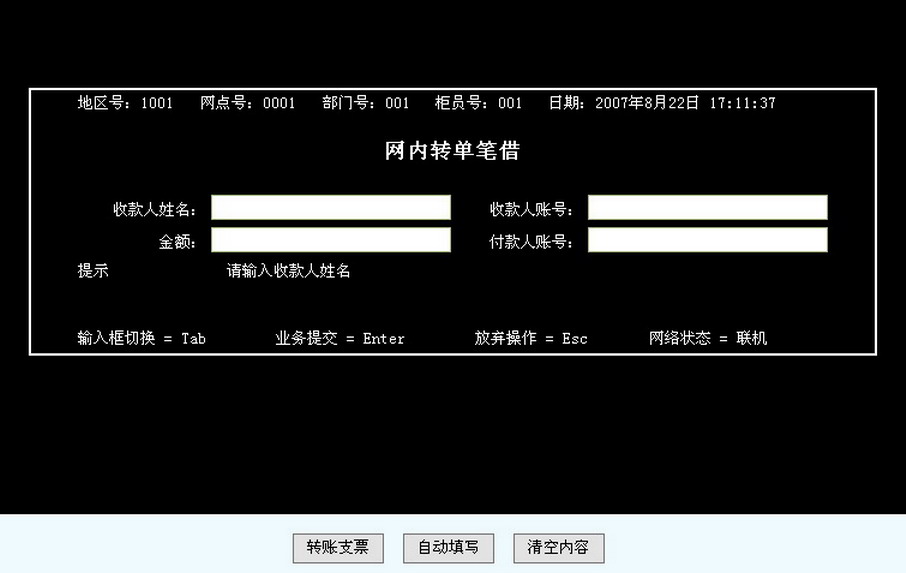 學(xué)生在經(jīng)過基礎(chǔ)的實務(wù)課程學(xué)習(xí)后,將被置于一個完全仿真的現(xiàn)代商業(yè)銀行的工作環(huán)境中,面對銀行每日的工作開始進行模擬實操。學(xué)生們將會面對虛擬的客戶提出的各種要求來進行相應(yīng)的處理。對于學(xué)生來講,實操過程中的所有操作都是自由的,他們需要通過完全自主的思考來判斷下一步的操作。譬如客戶提出的支票轉(zhuǎn)帳請求是否受理?如果不受理理由是什么?(譬如涉及支票的鑒別、簽章的鑒別等)接受以后如何操作?同時模擬系統(tǒng)根據(jù)內(nèi)置的業(yè)務(wù)邏輯自動判斷學(xué)生操作的正確性,對其業(yè)務(wù)能力進行實時的評價和記錄,并且將結(jié)果及時反饋給學(xué)生。通過每一步操作的自主思考和系統(tǒng)不斷的提示加強學(xué)生對于業(yè)務(wù)處理的理解,幫助其提高業(yè)務(wù)操作的熟練程度,并且培養(yǎng)其判斷分析能力。實操訓(xùn)練的內(nèi)容完全參照日常銀行業(yè)務(wù)操作所涉及的范圍,同時也可以根據(jù)實驗課程主題的要求進行具體的靈活配置。