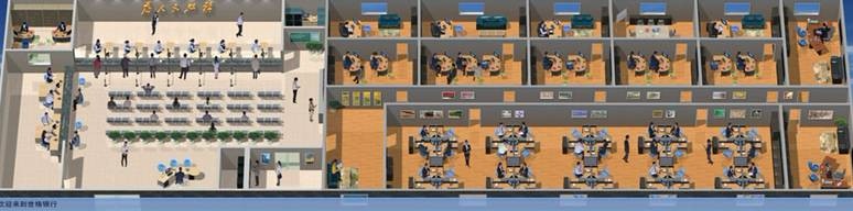 LG-RCJ03A 現(xiàn)代商業(yè)銀行模擬教學(xué)平臺對于現(xiàn)代商業(yè)銀行的工作環(huán)境進行全面仿真,包括營業(yè)大廳的布局,對公對私的工作臺、貸款管理部門的辦公室等全3d的建筑仿真;工作人員日常業(yè)務(wù)使用的綜合業(yè)務(wù)系統(tǒng)等核心業(yè)務(wù)軟件和各種業(yè)務(wù)單據(jù);簽章、電腦、打印機、點鈔機、票箱、打碼機、壓數(shù)機等辦公設(shè)備。并且在模擬實操中讓學(xué)生來熟悉和使用。