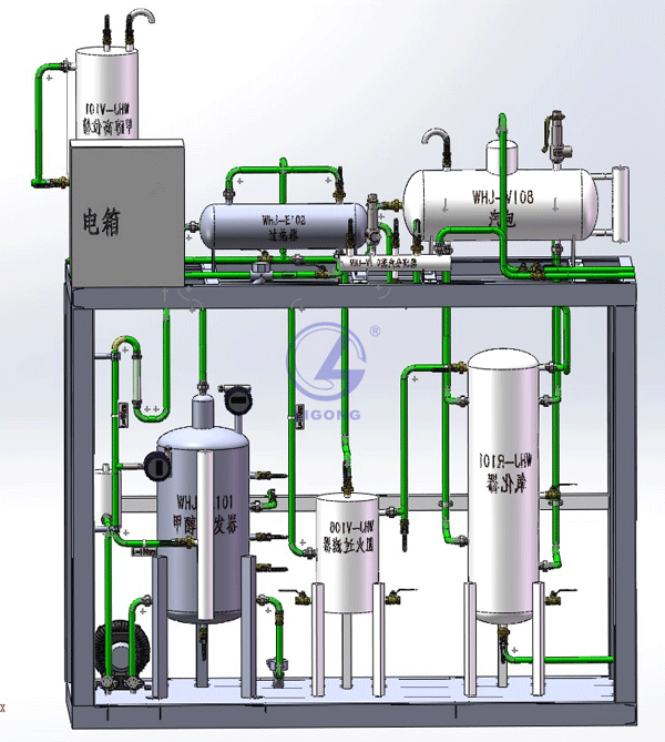 整套裝置由鋼制安裝框架、甲醇計(jì)量槽、甲醇汽化器、氣體混合器、氧化器、仿真儀表、就地計(jì)算機(jī)操作臺(tái)、、就地智能儀表控制上位監(jiān)控軟件、外置配套設(shè)備等組成,工藝路線簡(jiǎn)潔清晰,現(xiàn)場(chǎng)儀表與通訊模塊有機(jī)結(jié)合,上位計(jì)算機(jī)控制,設(shè)置DCS界面及自動(dòng)評(píng)分系統(tǒng)。