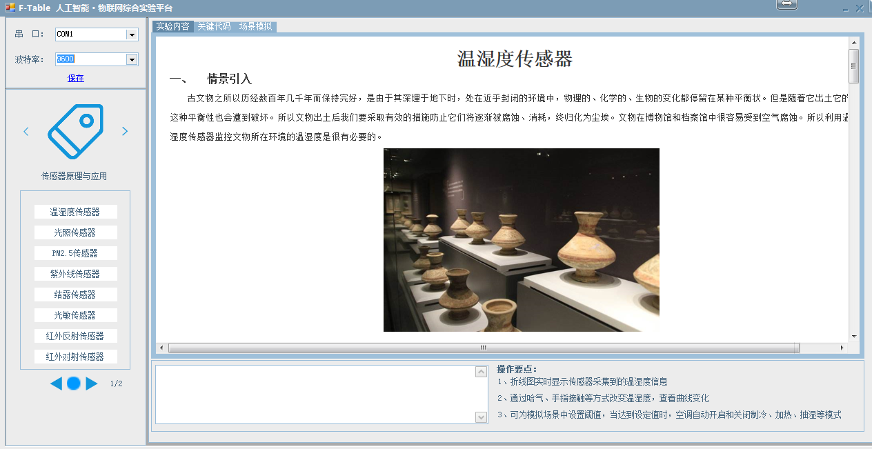 在C#軟件上有每一個教學實驗資源,包含實驗目的,實驗原理,實驗內(nèi)容,實驗步驟,實驗過程,實驗現(xiàn)象以及對應場景應用,能夠讓學生不僅學習傳感器概念,原理,開發(fā),還能學以致用。