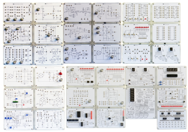 本設(shè)備是將模擬與數(shù)字電路實際應(yīng)用中單元電路模塊化。便于教師的教學和學生的認識,所有實訓(xùn)的內(nèi)容均由學生通過電子連接線搭接,很方便就能搭建成各種實際產(chǎn)品。培養(yǎng)學生的動手能力以及解決問題的能力。