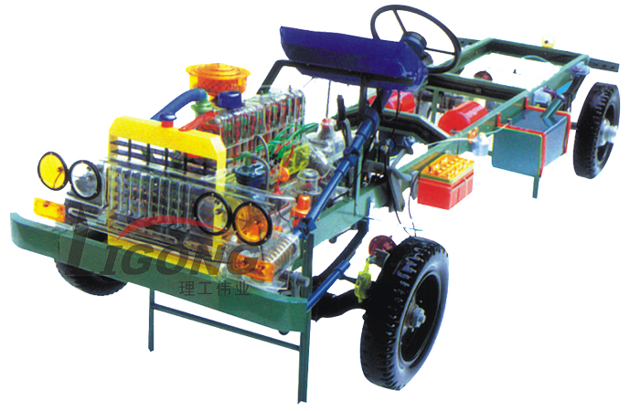 透明汽車整車模型選用透明有機玻璃制作,內(nèi)中部件均以硬質(zhì)塑料料加工,用 螺絲固定在金屬高溫烘漆而成的車架上。各總成部分都以壓模成形加 工,代替過去膠粘合的方法,使產(chǎn)品在強度上有很大提高。發(fā)動機總成用電機驅(qū)動,在油門處設(shè)有調(diào)速裝置,能演示發(fā)動機轉(zhuǎn)速高低。離合器分離明顯,操縱靈活,離合器外殼整體壓模而成,變速箱和各檔齒輪用各種顏色表示,換檔靈活,手制動美觀。后橋外形壓模而成,內(nèi)中主減速、差速轉(zhuǎn)動自如,輪轂剎蹄壓模成型,剎蹄可調(diào)節(jié),前橋輪鼓可調(diào)整,轉(zhuǎn)向裝置以及電瓶、油箱、水箱,制動管路分布清楚一目了然。電路采用對插件前后分布,燈架、風(fēng)窗、儀表板、后燈架用透明有機玻璃壓模成整體美觀逼真。