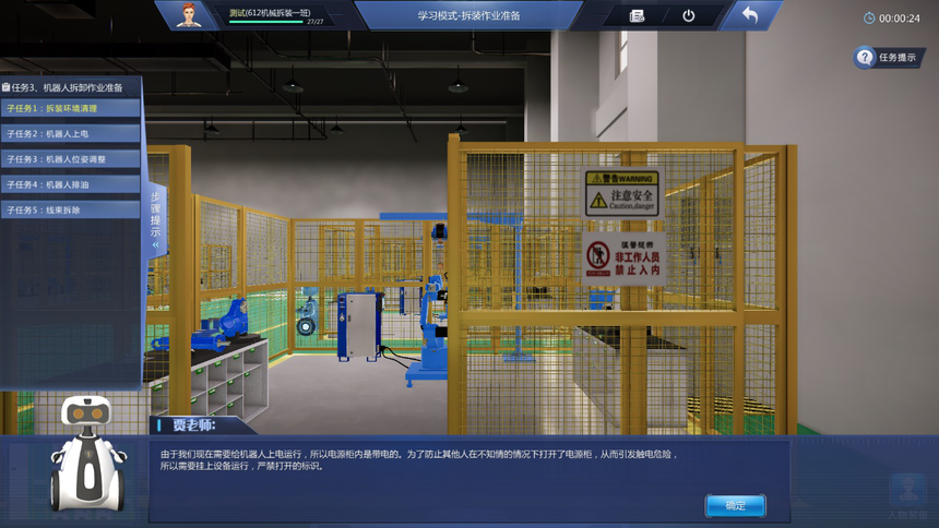 5、沉浸式體驗設計:選擇實際生產中典型工作任務,融合了崗位職業(yè)技能與專業(yè)技術,進行沉浸式學習情境設計,學習者通過實訓系統(tǒng)中的任務提示、NPC指引、語音等完成具體任務,逼近真實的實訓操作。