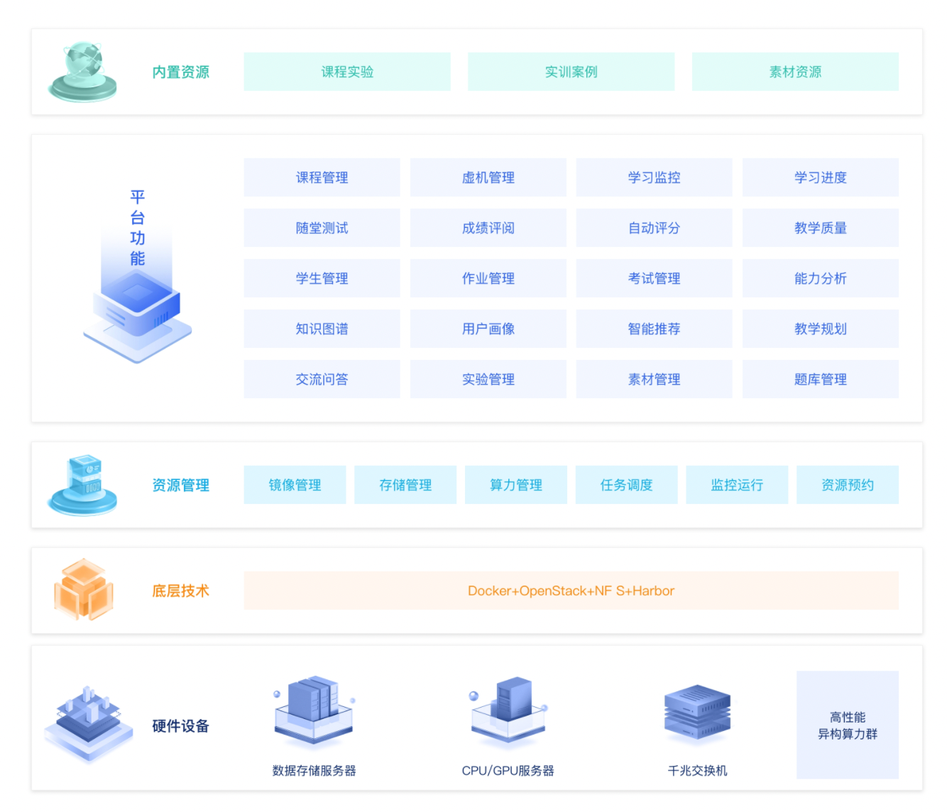 一、建設(shè)方案 高校信創(chuàng)實(shí)驗(yàn)室主要包括數(shù)智化實(shí)踐教學(xué)平臺(tái)和信創(chuàng)課程資源。 數(shù)智化實(shí)踐教學(xué)平臺(tái)采用國(guó)產(chǎn)化技術(shù),實(shí)現(xiàn)云計(jì)算資源的集中共享、統(tǒng)一調(diào)度管理的技術(shù)創(chuàng)...