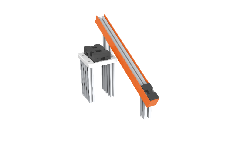 皮帶輸送單元是設(shè)備的重要組成部分,負(fù)責(zé)接駁CPU托盤的運(yùn)輸,包括輸送機(jī)本體、氣缸定位機(jī)構(gòu)、編碼器測(cè)速機(jī)構(gòu)、光電開關(guān)等組件構(gòu)成,如圖所示。芯片托盤在兩端位置可以用氣缸定位機(jī)構(gòu)定位,方便機(jī)器人精準(zhǔn)上料,編碼器可以實(shí)時(shí)測(cè)得皮帶線速度,以結(jié)合機(jī)器人和視覺相機(jī)進(jìn)行動(dòng)態(tài)抓取及物料識(shí)別。側(cè)面具有光電開關(guān),可檢測(cè)芯片托盤位置。如圖所示