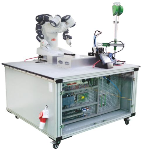 智能分揀機(jī)器人實(shí)訓(xùn)裝置是一套用于機(jī)器人分揀、裝配、協(xié)同工作及成品檢測的綜合教學(xué)培訓(xùn)裝置。該設(shè)備有多個工作站可自由選擇更換,主要有撲克牌與木分揀搭接工作站和藥瓶安裝工作站。主要通過雙臂人機(jī)協(xié)作式工業(yè)機(jī)器人來完成積木分揀與搭接、撲克牌分揀、藥瓶裝配、藥瓶外包裝貼標(biāo)器以及鎖螺絲等工作。