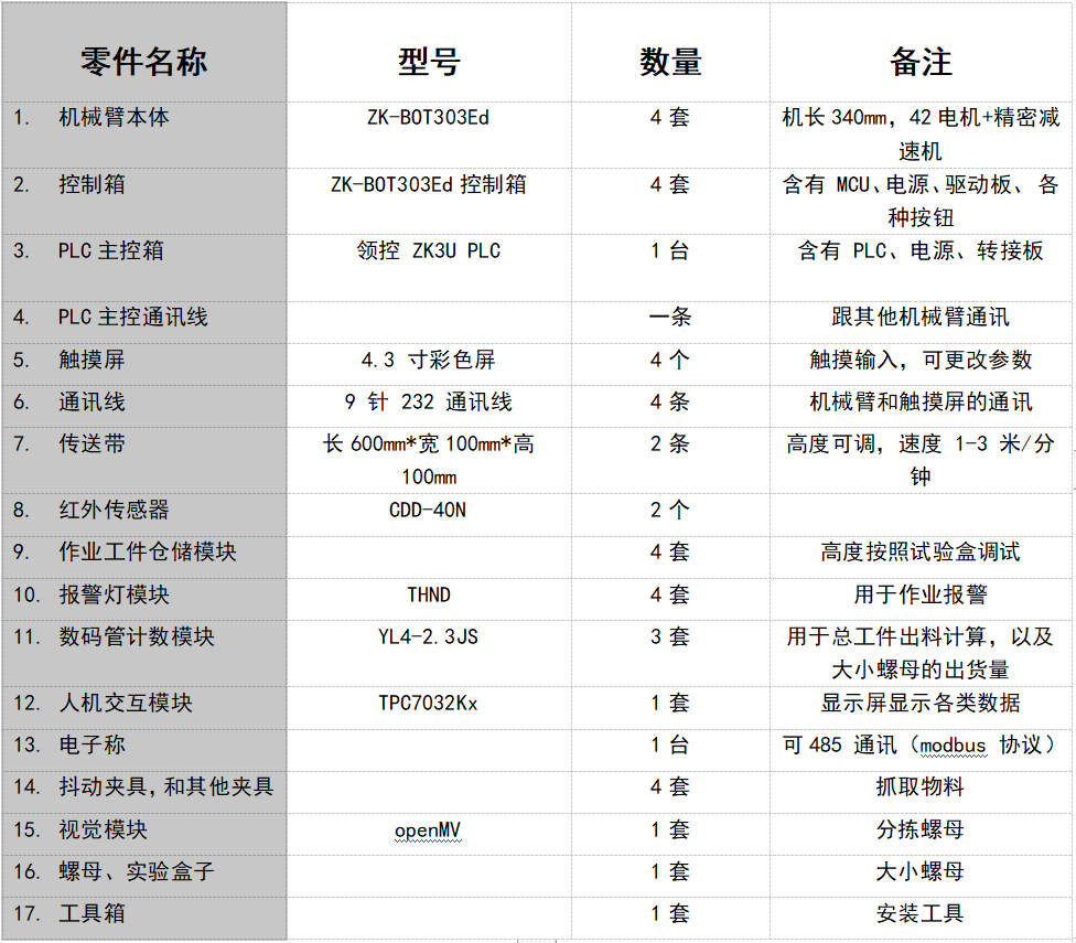 其他:包括系統(tǒng)實訓(xùn)臺、控制按鈕與連接器盒、不同大小螺母、走線槽等氣路系統(tǒng)組成。