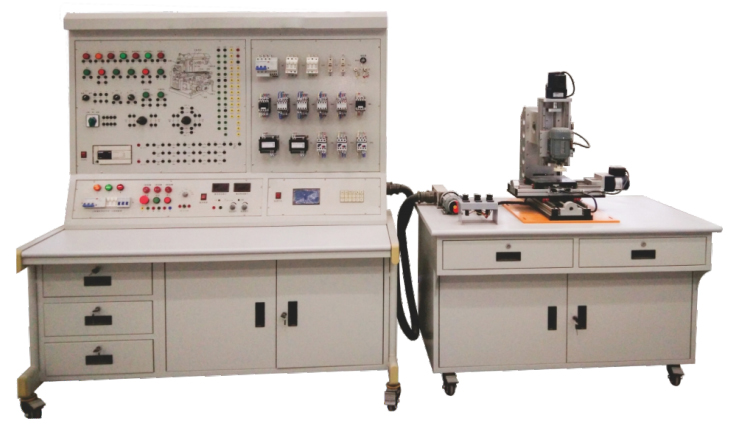 LGY-DQ013D型X62W銑床電氣維修實訓考核裝置是由多種電氣元器件組成各種電氣控制線路,并配有由教師機控制的智能考核系統(tǒng)方便教學使用。本設備采用仿真實物的方式,根據(jù)實物工作原理設計出機械機構(gòu)進行高強度仿真學習,在有效學習的基礎上增加了樂趣性。為了能開拓學生的思維,提高學生的創(chuàng)新意識本設備特別加入了PLC改造系統(tǒng),滿足了學員對本設備的創(chuàng)新性創(chuàng)造,本設備完全可以獨立使用,學生可以在該系列實訓考核臺上進行各種電氣故障的排除、訓練和演示,以達到熟悉各種故障現(xiàn)象和熟練排除各種故障現(xiàn)象的動手能力和訓練目的。