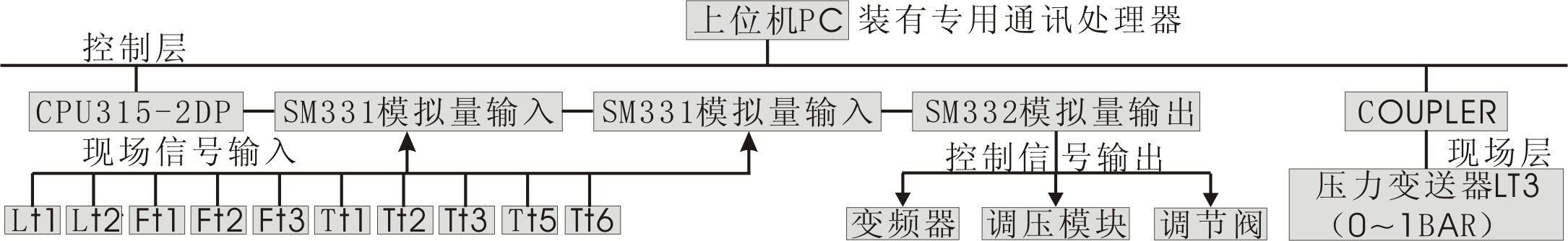 下位S7-300 PLC控制系統(tǒng)運(yùn)行程序采用STEP7軟件編譯,并下裝到CPU315-2DP主機(jī)模塊中。系統(tǒng)控制運(yùn)算主要由下位的S7-300PLC執(zhí)行。上位PC機(jī)中監(jiān)控軟件采用WINCC V6.0人機(jī)界面軟件編寫,上位PC監(jiān)控軟件可進(jìn)行控制算法參數(shù)設(shè)定,被控參數(shù)實時曲線、歷史曲線、動態(tài)顯示,實驗流程圖的顯示及本實驗相關(guān)的被控參數(shù)動態(tài)數(shù)據(jù)顯示。