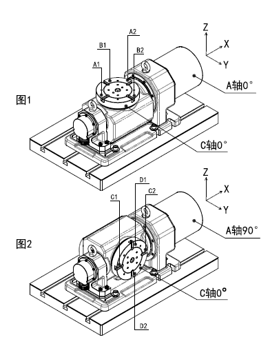 A、C軸采用大扭矩伺服電機(jī)驅(qū)動(dòng),;通過高精度減速器傳動(dòng),速比1:120,達(dá)到分度精度高、夾緊力大、剛性好。