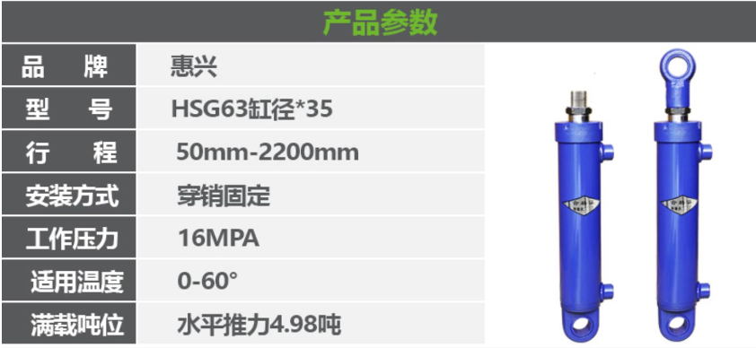 63缸徑雙向雙作用油缸,缸徑63毫米,桿徑35毫米,形成150毫米。