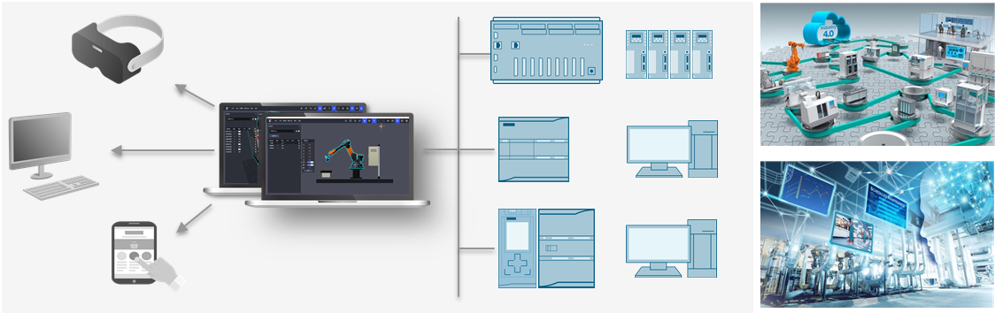 LG-TVP01型 數(shù)字孿生系統(tǒng)能夠從虛擬機械設計、虛擬電氣接線再到虛實互動編程,虛擬調(diào)試以及集成調(diào)試的整個過程,同時配置XR互動仿真,能夠?qū)崿F(xiàn)多人協(xié)作的沉浸式應用,TVP系統(tǒng)具有多種仿真和組合方式,支持半實物、全虛擬、以及3D互動的編程方式。